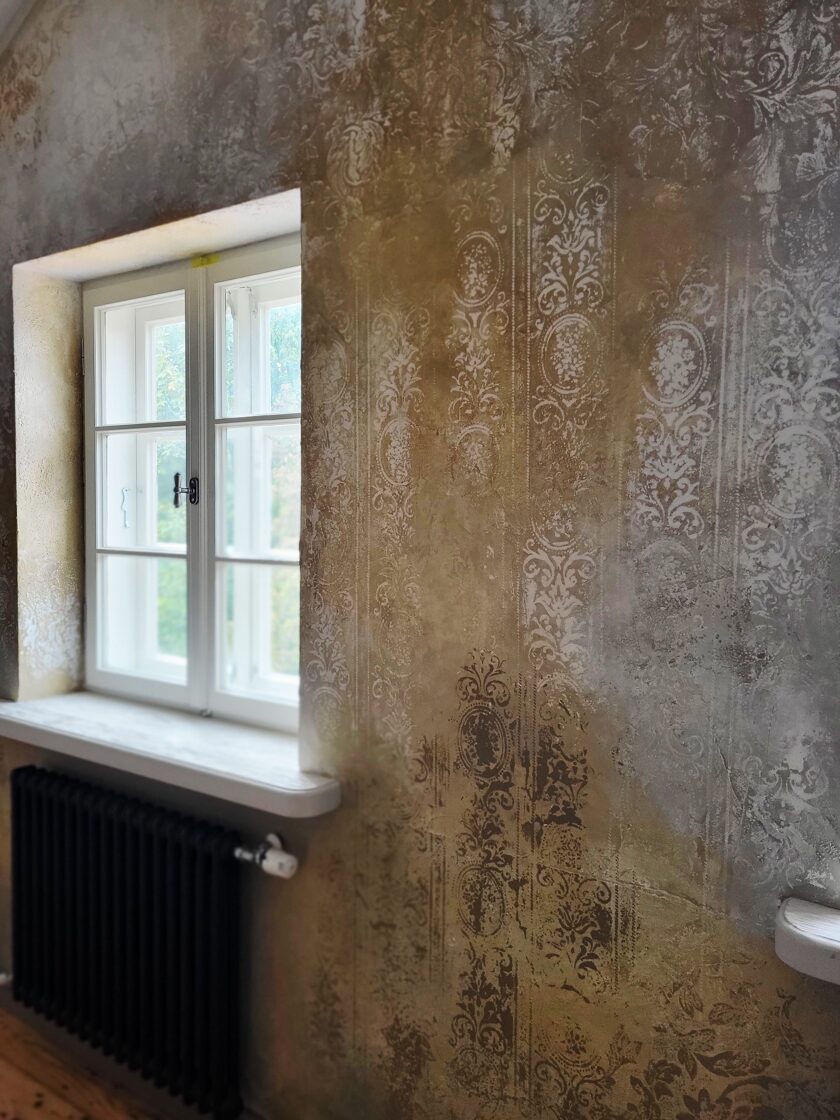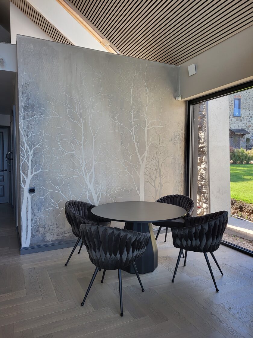 Gleznot uz krāsojamās tapetes var, taču viss atkarīgs no tās faktūras un raksta. Ja tapete ir gluda un bez izteikta raksta, gleznojums izskatīsies kā īsts sienas gleznojums. Ja raksts ir reljefs, vizuāli tas var atgādināt greznu tapeti ar gleznojuma efektu. Pārliecinies, ka tapete stingri turas pie sienas un nav bojāta. Ja nepieciešams, vari to pārkrāsot vienā tonī. Gleznojuma izvēles procesā es palīdzēšu izvērtēt, kā tapetes raksts ietekmēs gala izskatu, un pielāgošu gleznojuma tehniku, lai rezultāts izskatītos harmoniski ar faktūru.